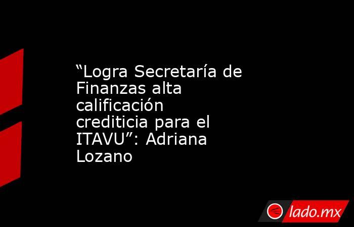 La secretaria de Finanzas del Gobierno de Tamaulipas, Adriana Lozano Rodríguez, informó que la Agencia de Valores PCR Verum, ha otorgado una calificación crediticia de AAA/M (e) al Instituto Tamaulipeco de Vivienda y Urbanismo de Tamaulipas; lo que significa, que este instituto cuenta con un comportamiento crediticio sobresaliente.