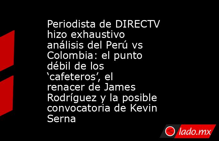 Colombia es el niño de la película, realmente ha crecido muchísimo, está noveno en el ranking FIFA. Está haciendo las cosas muy bien que tiene muchos jugadores de jerarquía con un muy buen presente. El único tema es James Rodríguez... ¿Quién es el mejor jugador? ¿Quién fue el mejor de la Copa América? Terminó la Copa América y solo faltó ofrecerle a Alianza Lima y Sporting Cristal. Lo ofrecieron al todo el mundo, no lo agarró nadie. El único que levantó la mano fue Rayo Vallecano, y tuvo que firmar de último momento porque no tenía equipo. Lo que pasa es que James se pone la camiseta de la selección y rinde, se transforma, le gusta jugar ahí; pero perdió ritmo de competencia. Hace 50 días jugó con Argentina y no tocó pelota desde ese día, esa es la ventaja que tiene Perú, un James que no tiene ritmo.