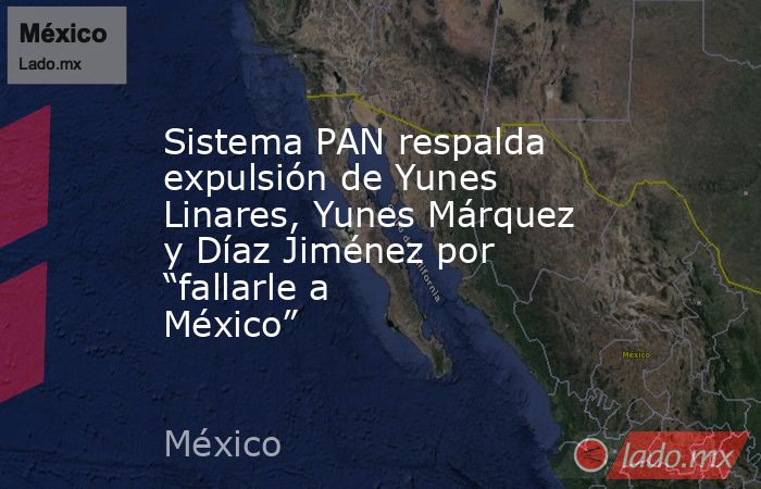 El Sistema PAN, encabezado por las Dirigencias Estatales, diputados y diputadas Locales, alcaldes y alcaldesas, manifiestan todo su respaldo a las acciones tomadas por la Comisión Permanente Nacional, que determinó iniciar el proceso de expulsión de Miguel Ángel Yunes Linares, Miguel Ángel Yunes Márquez y Natividad Díaz, por fallarle a México.