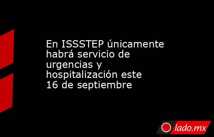 El cargo En ISSSTEP únicamente habrá servicio de urgencias y hospitalización este 16 de septiembre apareció primero en Tribuna Noticias.