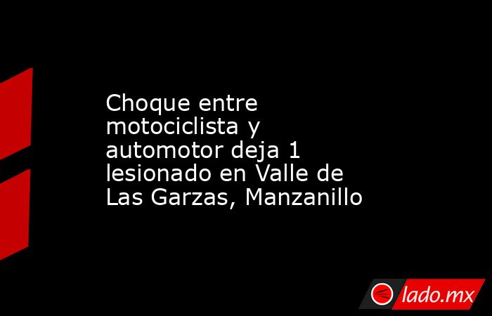 Manzanillo.- Un motociclista resultó lesionado tras un choque con un vehículo en inmediaciones del Barrio I del Valle de Las Garzas, municipio de Manzanillo, la mañana de este martes 24 de septiembre de acuerdo a fuentes policiales.