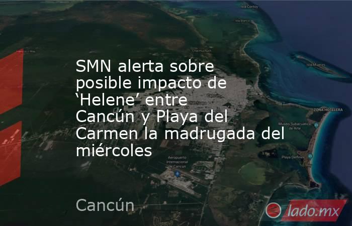 El Servicio Meteorológico Nacional (SMN) alertó sobre el posible impacto de Helen, que hasta la tarde de este martes permanece como tormenta tropical, durante la madrugada del miércoles, con una intensidad de categoría 1, en la zona que va desde Playa del Carmen hasta Isla Mujeres, al norte de Quintana Roo.