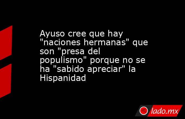 La presidenta de la Comunidad de Madrid, Isabel Díaz Ayuso, ha afirmado que hay "naciones hermanas" que son "presa del populismo" actualmente porque no se ha "sabido apreciar" la Hispanidad como gesta y obra. "Yo pienso que durante décadas y siglos los distintos gobiernos en realidad no hemos sabido apreciar nuestra mayor obra, la Hispanidad. Ha sido nuestra mayor gesta y por culpa de no haberlo hecho así, hoy muchas de nuestras naciones hermanas están presas del populismo, de las peores dictaduras y las narcodictaduras, como puede ser la venezolana, Nicaragua o Cuba", ha planteado la presidenta en un acto de la II Academia de Nuevas Generaciones del PP de Madrid el mismo día que tendrá lugar el plato fuerte del festival de la Hispanidad: el concierto de Manuel Turizo en la Puerta de Alcalá. La también presidenta del PP de Madrid ha defendido el 12 de Octubre como "un día de orgullo" y ha defendido la Hispanidad como "una cultura que une 600 millones de almas por todo el planeta". "Eso nos demuestra que España es mucho más que ella misma. Somos 22 naciones hermanas. Eso es fruto de siglos de historia, de mestizaje a los dos lados del Atlántico. Somos un proyecto, por tanto, mucho más amplio que nosotros mismos", ha planteado la presidenta, apostillando a continuación que en ello radican "muchas respuestas de lo que está ocurriendo hoy en el continente americano" y en España. Al hilo, ha afirmado que conocer América además de ayudar a entender a España también permite explicar el porqué de que "tantos ciudadanas una vez han perdido la prosperidad" y la libertad llegan a Madrid a "empezar desde cero en una comunión natural". Ha insistido, además, en que se ha permitido que cale "un discurso falso contra todo lo español", que "sigue sucediendo hoy". Ha sostenido que se ha "impregnado" a "gente de buena fe" en este continente para que "de manera populista busquen un agravio y una explicación a los males del presente en el pasado". "Yo celebro que estos días estemos por las calles de Madrid celebrando el mestizaje, la unión, todo aquello que da sentido a la vida, el ser una cultura como la nuestra, con miles de matices y acentos, pero alegre, viva, flexible, callejera, brava", ha remarcado la líder autonómica. Ha reivindicado la importancia de saberse "mucho más que solo España", una capacidad que "cualquier otra potencia mundial de pelearía por tener lo mismo". "Así que creo que ha llegado el momento de celebrarla y de seguir ampliando nuestras miras y saber que a los dos lados del Atlántico somos una gran comunidad", ha zanjado.