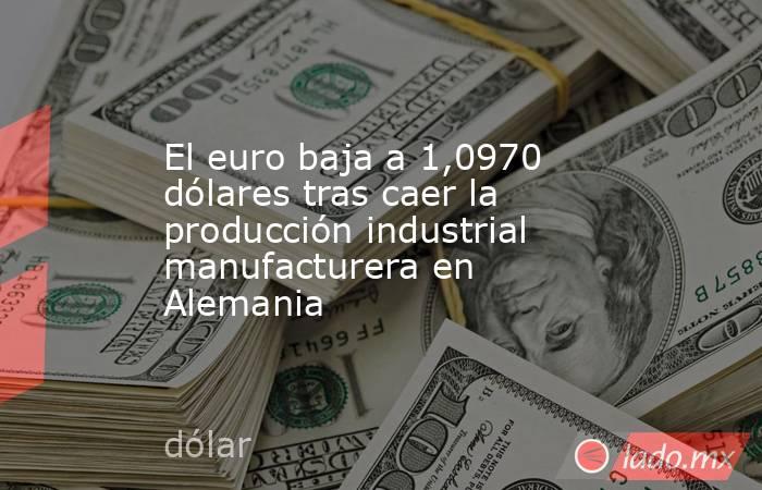 El euro baja a 1,0970 dólares tras caer la producción industrial manufacturera en Alemania Infobae