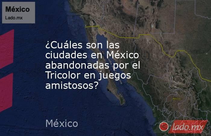 Mientras que las ciudades que menos encuentros tuvieron con solo uno son: el Estadio Morelos, que el 24 de enero 2001 cayó 2-0 ante Bulgaria, el extinto Luis Pirata Fuente, cotejo en el cual se impusieron 5-4 a Liberia y el Alfonso Lastras de San Luis, encuentro en el que fueron mejores ante Irán y los golearon 4-0, así como el Estadio Cuahtémoc, que desde 2001 no recibe un juego completo del Tricolor, porque en 2007 el compromiso que tenía ante Panamá se tuvo que suspender por lluvia.