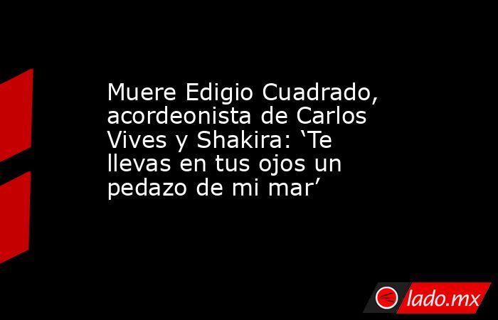El músico colombiano Edigio Cuadrado murió en Bogotá a los 71 años, fue un reconocido acordeonista, compañero de Carlos Vives en la agrupación La Provincia e incluso tocó al lado de Shakira, en el video musical ‘La Bicicleta’.