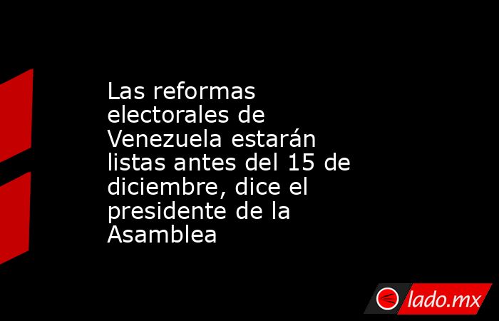 (CNN Español) -- El presidente de la Asamblea Nacional de Venezuela, Jorge Rodríguez, dijo este miércoles que las reformas a las leyes electorales del país estarán listas antes de que termine el período legislativo en curso, el 15 de diciembre.