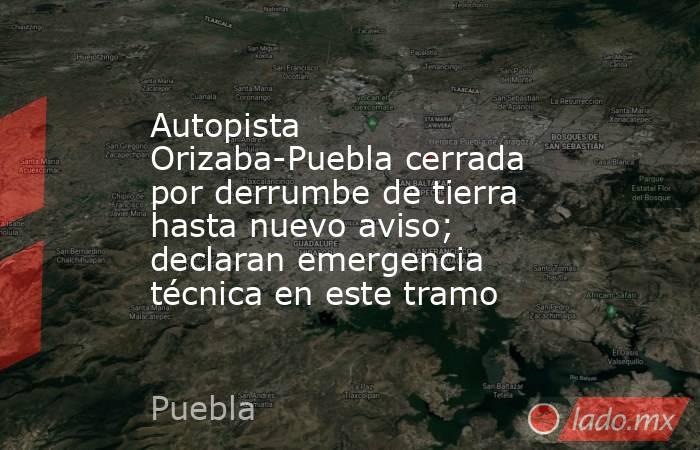 Autoridades de Caminos y Puentes Federales han confirmado que la Autopista 150D Orizaba-Puebla permanecerá cerrada totalmente hasta nuevo aviso, además de que se ha declarado una emergencia técnica en este tramo carretero, a causa del deslizamiento de talud registrado en el kilómetro 230 en la zona conocida como El Mirador.