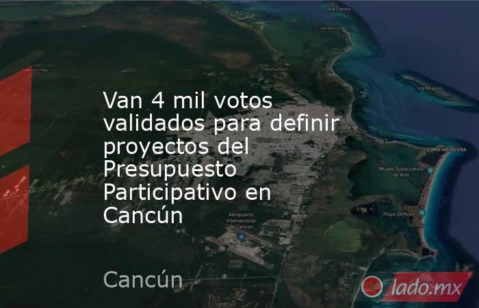 - De los seis mil votos emitidos de manera digital para definir los proyectos de Presupuesto Participativo 2024, cuatro mil ya fueron validados, informó Berenice Sosa Osorio, titular de la Secretaría Municipal del Bienestar, quien indicó que este año cuenta con 33 millones de pesos para ejercer en obra pública […]The post Van 4 mil votos validados para definir proyectos del Presupuesto Participativo en Cancún appeared first on Quintana Roo Hoy.