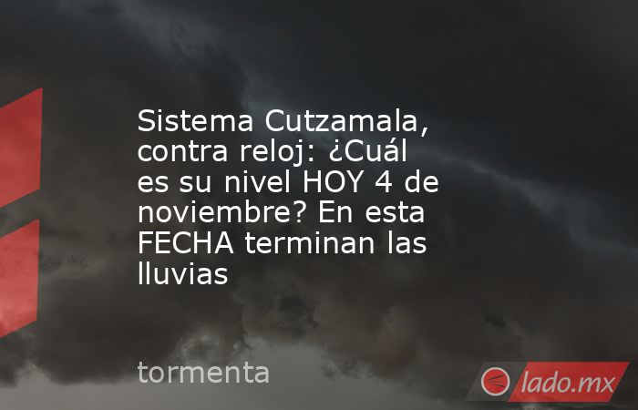 A unas semanas del fin de la temporada de lluvias, el Sistema Cutzamala sigue generando preocupacionestras atravesar un año de fuertes sequías, que puso su recolección al límite, pero ¿cuál es su nivel hoy 4 de noviembre? ¿Cuándo terminan las lluvias? Te decimosTe recordamos que se trata delsistema hídrico de almacenamiento, conducción, potabilización y distribuidor de agua dulce para la población e industria de la Ciudad de México y el Estado de México.