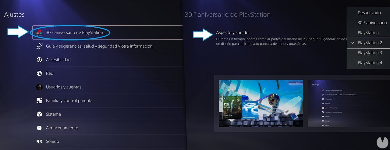 Encontraréis estos estilos del 30 aniversario entrando en los Ajustes de la PS5.