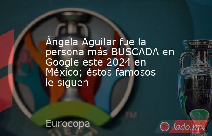 EurocopaCopa AméricaAmérica vs Cruz AzulGimnasia artísticaNatación artísticaTelevisión y cineEn televisión, el reality show de La casa de los famosos se coronó como lo más buscado y según datos de Galilea Montijo, este año rompió el récord de audiencia que habían establecido el año pasado:La casa de los famososBridgertonNadie nos va a extrañarBebé renoEl secreto del ríoEn cuanto al cine, películas esperadas como Intensamente 2 y Deadpool & Wolverine dominaron las búsquedas, mostrando una clara preferencia por el entretenimiento:Intensamente 2Deadpool & WolverineBeetlejuice 2Kung Fu Panda 4La sociedad de la nieve¿Quiénes fueron las personas más buscadas del año?La popularidad de Ángela Aguilar en 2024 no solo resalta su talento musical, sino también cómo su vida personal ha capturado la atención pública, donde sus polémicas fueron el centro de atención durante este año.