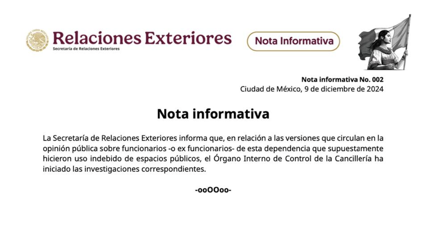 La SRE –ahora a cargo de Juan Ramón de la Fuente–informó que abrió una investigación interna sobre el caso. E