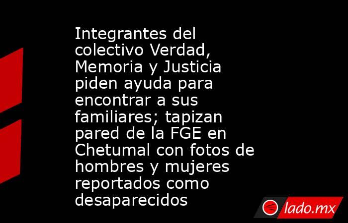 - Integrantes del colectivo Verdad, Memoria y Justicia intensificaron sus labores de búsqueda en Chetumal de familiares desaparecidos y colocaron la fotografía de por lo menos 48 hombres y mujeres sin ser localizados en las paredes de la Fiscalía General del Estado luego de que, en Cancún, se reportó que el […]The post Integrantes del colectivo Verdad, Memoria y Justicia piden ayuda para encontrar a sus familiares; tapizan pared de la FGE en Chetumal con fotos de hombres y mujeres reportados como desaparecidos appeared first on Noticaribe.
