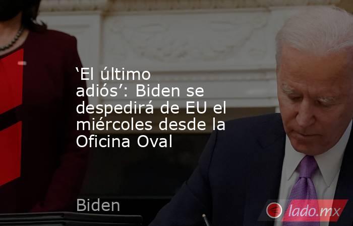 El presidente estadounidense Joe Biden ofrecerá un discurso de despedida a la nación el miércoles desde la Oficina Oval, cinco días antes de que el presidente electo Donald Trump tome posesión del cargo.