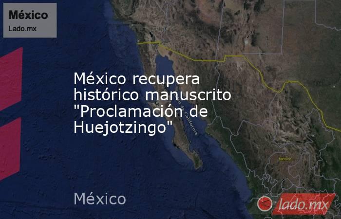 El Consulado General de México en Nueva Yorkinformó sobre la exitosa recuperación de un documento histórico invaluable, la "Proclamación deHuejotzingo", fechado el 24 de junio de 1554 y firmado por Fray Juan de Alameda.