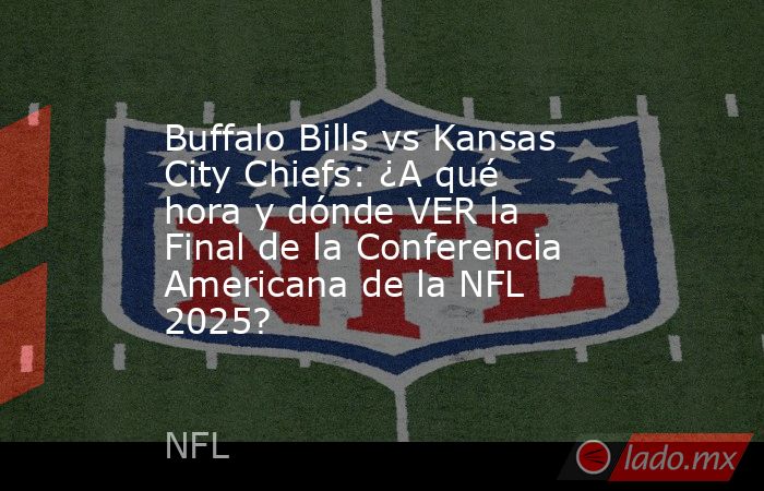 Fecha: domingo 26 de eneroHorario: 17:30 horasLugar: Arrowhead Stadium¿Dónde ver Bills vs Chiefs EN VIVO?La transmisión del partido Bills vs Chiefs por el título de la AFC será por televisión abierta en Canal 5, aunque otras opciones será para ver este emocionante es ESPN, junto a los streamings de ViX, Disney+ y NFL Game Pass, donde estos últimosCanales de tv: ESPN y Canal 5Streamings: ViX, Disney+ y NFL Game Pass¿Cómo llegan los Bills y Chiefs a final de la AFC?Los Buffalo Bills van por la revancha ante los Chiefs, quienes en los últimos enfrentamientos han impedido que lleguen al Super Bowl; para este juego por el título de la AFC los liderados por Josh Allen llegan tras haber derrotado de manera apretada 27-25 a los Ravens en la Ronda Divisional.