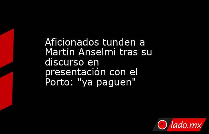 com/DujMiPTt2K— FC Porto (@FCPorto) January 27, 2025Aficionados tunden a Martín AnselmiEl discurso del argentino generó opiniones divididas entre los aficionados, quienes no dudaron en manifestarse a través de sus redes sociales, sobre todo en la plataforma de X.
