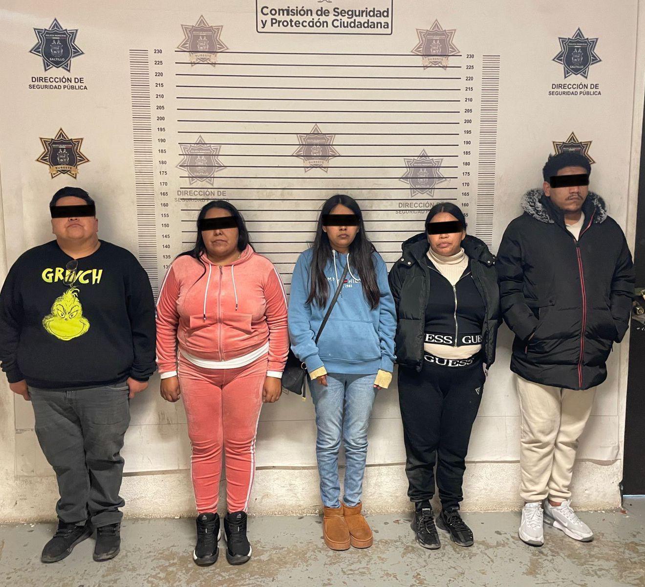 La Policía Municipal de Saltillo logró la detención de cinco personas presuntamente relacionadas con una banda de farderos, quienes fueron capturados en Plaza Nogalera tras ser sorprendidos con mercancía robada con un valor superior a los 19 mil pesos.
