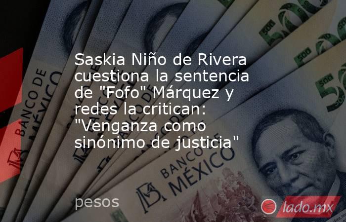 ¿Qué dijo Saskia Niño de Rivera?Por medio de una publicación en X, antes Twitter,Saskia Niño de Rivera calificó que la sentencia de "Fofo" Márquez fue un acto de venganza disfrazado como un "sinónimo de justicia".