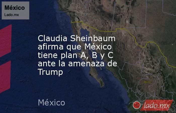 CIUDAD DE MÉXICO.- “Tenemos plan A, plan B, plan C para lo que decida el gobierno de Estados Unidos… Estamos preparados”, afirmó la presidenta Claudia Sheinbaum ante la persistencia de su par estadunidense Donald Trump de imponer tarifas arancelarias del 25% a México, y reiteró que tienen una mesa de diálogo con el gobierno estadunidense.