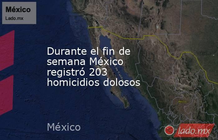 Durante el fin de semana del viernes 31 de enero al domingo 2 de febrero de 2025, México registró 203 homicidios dolosos, según datos del Secretariado Ejecutivo del Sistema Nacional de Seguridad Pública (SESNSP).