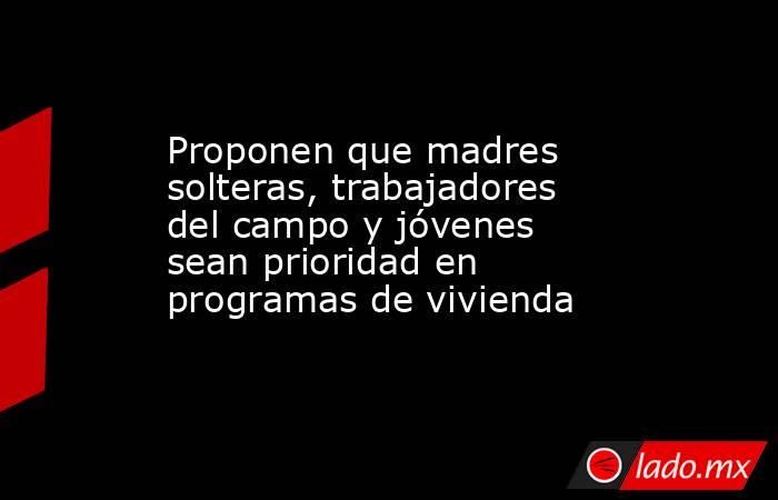 Proponen que madres solteras, trabajadores del campo y jóvenes sean prioridad en programas de vivienda NBCS.mx