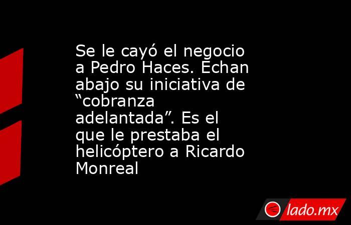 Hace unas semanas el senador Ricardo Monreal tuvo que pedir disculpas a los mexicanos por romper con la política de austeridad de la Cuarta Transformación. Resulta que el líder de la Cámara de Diputados se trasladaba de un lugar a otro en un helicóptero que un “amiguito” le prestaba a cambio de “vaya usted a saber”. Trascendió que ese amiguito era su compinche Pedro Haces, diputado morenista y dirigente sindical. Pues este sujeto intentó sacar adelante una ley para que los bancos y otras empresas se cobraran a lo chino con el sueldo de los empleados de gobierno que tuvieran deudas con ellos.