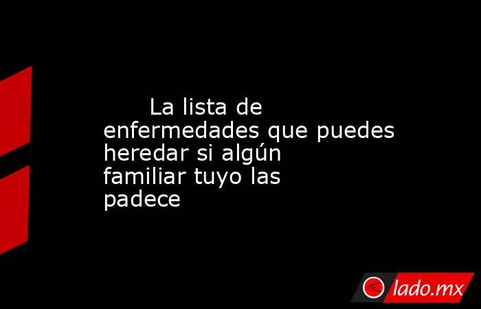 Todo el mundo puede contraer enfermedades. Algunas simplemente suceden, y otras, tienes más probabilidades que el resto de personas de padecerlas. Pero, ¿por qué? La respuesta es clara: algunas de ellas son hereditarias, lo que significa, que si algún familiar cercano tuyo las padece o las ha padecido, deberías hacerte una revisión porque puede ser que en un futuro te pueda afectar.