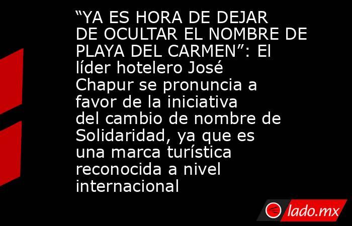“No podemos hablar […]The post “YA ES HORA DE DEJAR DE OCULTAR EL NOMBRE DE PLAYA DEL CARMEN”: El líder hotelero José Chapur se pronuncia a favor de la iniciativa del cambio de nombre de Solidaridad, ya que es una marca turística reconocida a nivel internacional appeared first on Noticaribe.