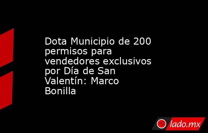 Para este próximo día del Amor y de la Amistad, el alcalde Marco Bonilla expidió en total 200 permisos para vendedores exclusivos para el 14 de febrero, de los cuales, 150 son permisos ya existentes, vigentes a los cuales sólo se les pide otorgar oportunidad en el cambio de giro para esta fecha, que además de lo que ellos venden, también puedan comercializar flores o detalles.