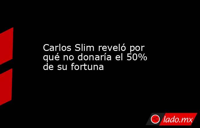 El empresario Carlos Slim reveló que no donaría el 50% de su fortuna porque el dinero no solucionaría todos los problemas sociales, e hizo un hincapié en lo que realiza Bill Gates en su fundación.