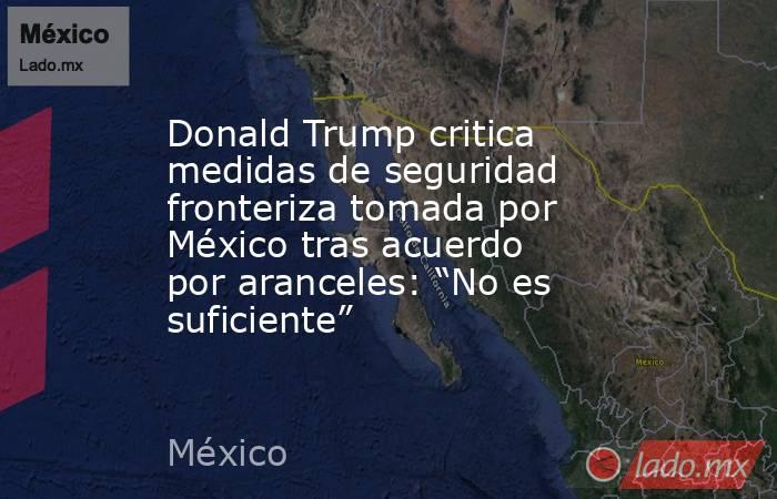 Donald Trump, presidente de Estados Unidos, criticó las medidas de seguridad fronteriza tomadas por México tras el acuerdo por aranceles, al considerar que “no es suficiente”.