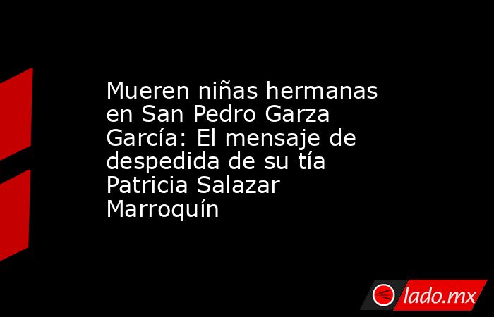 Patricia Salazar Marroquín, ex alcaldesa de Allende, Nuevo León, envió un sentido mensaje de despedida por la muerte de dos niñas hermanas quienes eran sus sobrinas-nietas y que acudieron desde Coahuila a una fiesta en San Pedro Garza García.