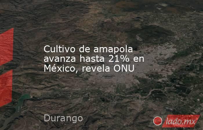 En 2017 el área de cultivo superó las 30 mil hectáreas; su producción se concentra en los estados de Sinaloa, Chihuahua y Durango La entrada Cultivo de amapola avanza hasta 21% en México, revela ONU aparece primero en Eje Central.