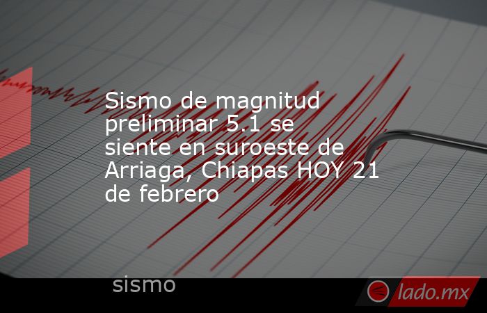 1 se registró ensuroeste de Arriaga, Chiapas, a las 17:32 horas, así lo informó el Sismológico Nacional.