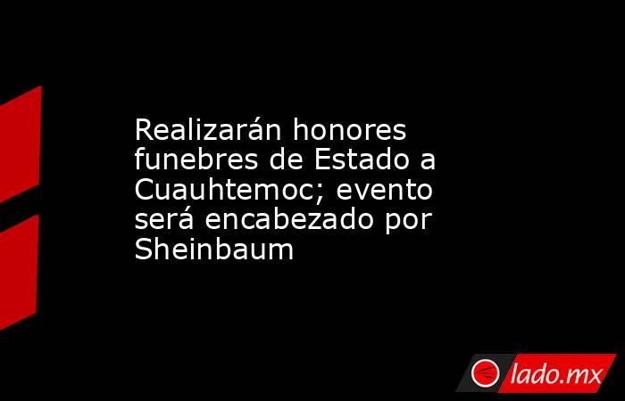 Sheinbaum encabezará eventoLa representacion solemne y artistica a cargo de la Secretaria de la Defensa Nacional, sera encabezada por la presidenta Claudia Sheinbaum y contara con la participacion del Instituto Nacional de Antropologia e Historia (INAH), que dara lectura a un documento titulado "Testamento a Cuauhtemoc" en esta fecha, que se estima seria el aniversario luctuoso.