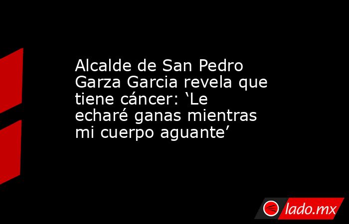 El alcalde en Nuevo León aseguró que seguira echandole ganas y continuara trabajando. El cancer que padece es conocido como mesotelioma pleural, considerado como poco frecuente al formarse en la membrana que cubre los pulmones.