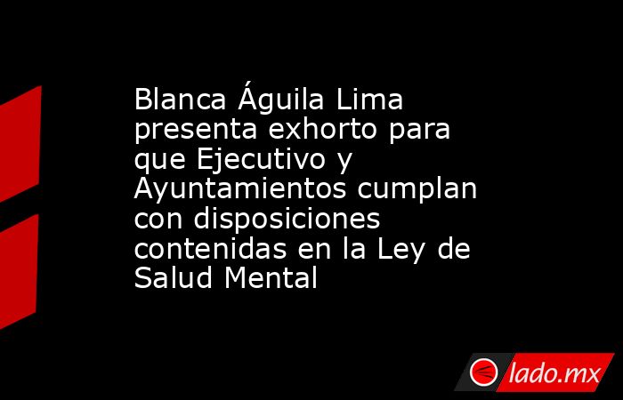 Con la intención de que en Tlaxcala se implementen acciones que atiendan el fenómeno de los problemas de salud mental entre la población, la diputada local Blanca Águila Lima presentó un exhorto al Poder Ejecutivo del Estado de Tlaxcala y a los 60 Ayuntamientos, para que den cumplimiento a diversas disposiciones contenidas en la Ley de Salud Mental y del Comportamiento Adictivo del Estado de Tlaxcala.