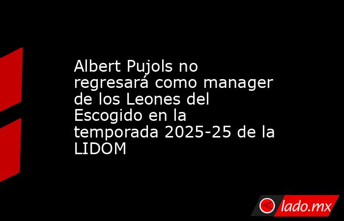 Albert Pujols no continuará como manager del equipo Leones del Escogido, actual campeón de LIDOM, a pesar de que el estratega tenía contrato de dos campañas con el conjunto melenudo.