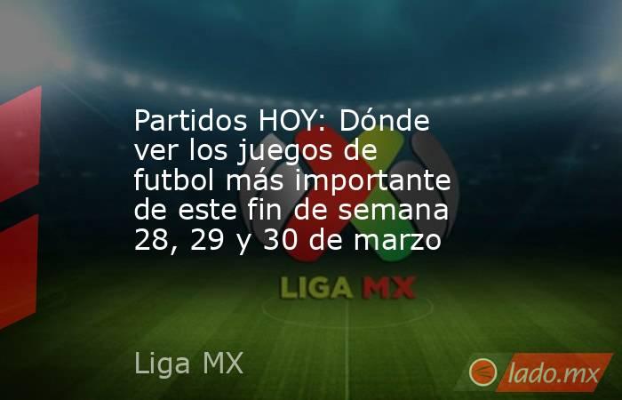 Pauli | 8:30 horasMönchengladbach vs RB Leipzig | 8:30 horasSerie A | Jornada 30Juventus vs Genoa | 11:00 horasFA Cup | Cuartos de finalFulham vs Crystal Palace | 6:15 horasDomingo 30 de marzoLiga MX | Jornada 13Santos vs San Luis | 17:00 horasLeón vs Pumas | 19:00 horasBundesliga | Jornada 27Borussia Dortmund vs Mainz | 9:30 horasSerie A | Jornada 30Napoli vs Milan | 12:45 horasFA Cup | Cuartos de finalBournemouth vs Manchester City | 10:30 horasLaLiga | Jornada 29Barcelona vs Girona | 9:15 horasReal Betis vs Sevilla | 14:00 horasBelgian Pro League | Jornada 1 Ronda de CampeonatoBrujas vs Anderlecht | 5:30 horas*Todos los horarios corresponden al tiempo centro de México¿Dónde ver los partidos del fin de semana en México?Los encuentros de la Liga MX pueden verse a través de distintos canales --dependiendo del equipo que juegue--, tales como Canal 5, Azteca 7, Tubi, Claro Sports, etc.