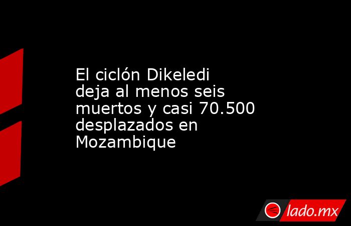 Maputo, 17 ene (EFE).- El paso del ciclón Dikeledi por el norte de Mozambique, en la provincia de Nampula, dejó esta semana al menos seis muertos y 18 heridos, así como cerca de 70.500 desplazados, confirmó a EFE este viernes el Instituto Nacional de Gestión y Reducción de Riesgo de Desastres (INGD).