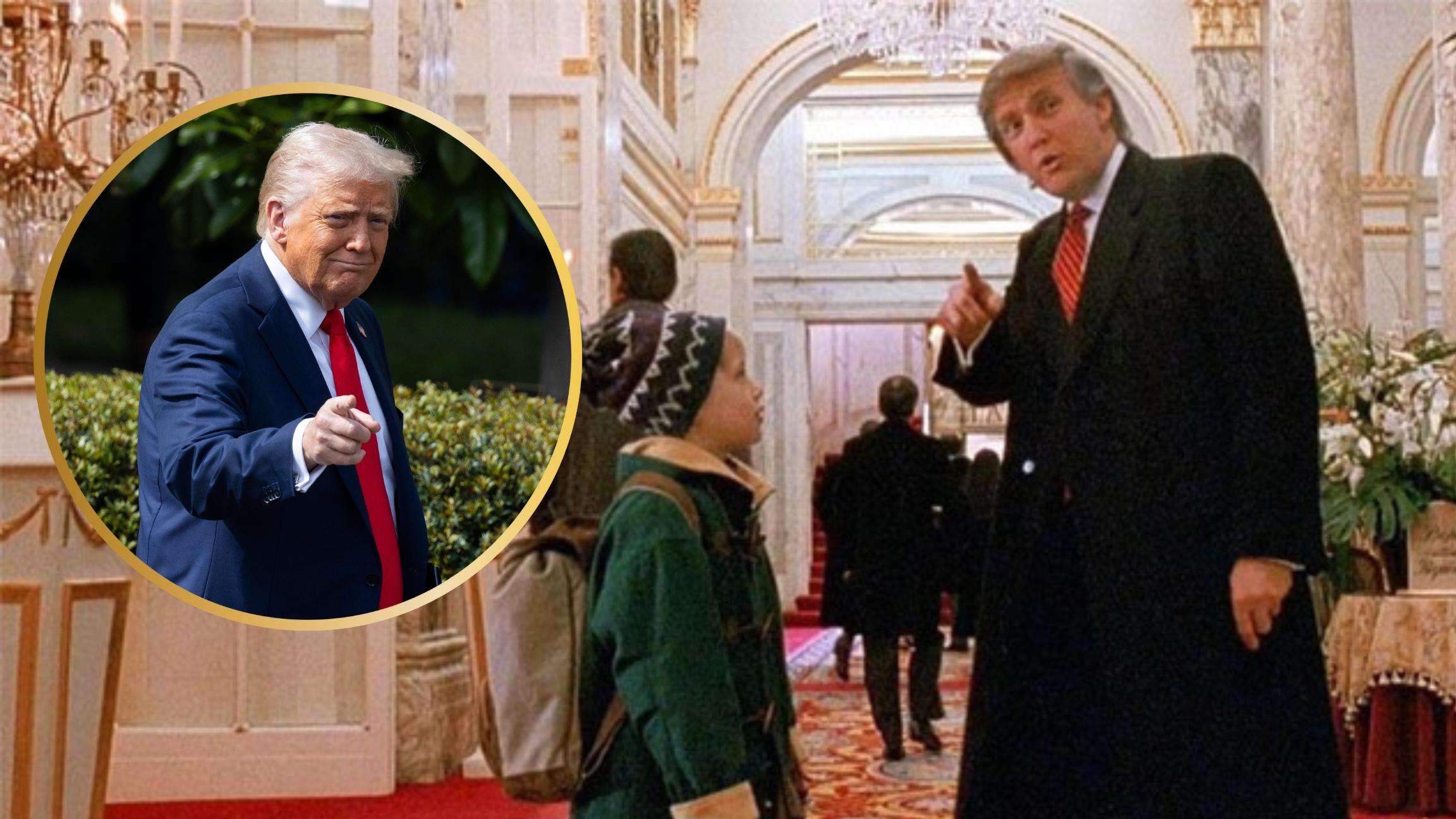 En el éxito de taquilla de 1992, el protagonista, Macaulay Culkin se cruza durante siete segundos con Trump, entonces un famoso magnate inmobiliario sin aparentes ambiciones políticas, en el Hotel Plaza de Nueva York que en ese momento poseía el empresario.