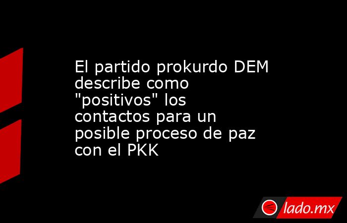 El prokurdo Partido Popular por la Igualdad y la Democracia (DEM) ha descrito este viernes como "positivas" las reuniones con políticos de Turquía para abordar un posible proceso de paz entre el Gobierno y al Partido de los Trabajadores del Kurdistán (PKK) y ha agregado que parece haber "un deseo común" de "dejar atrás el conflicto" en el país euroasiático.