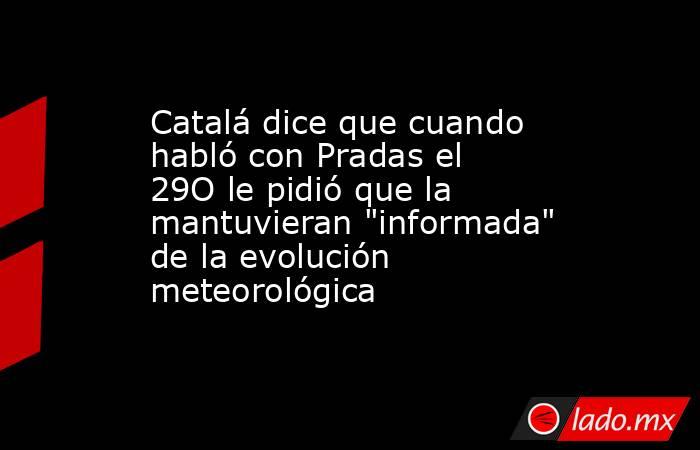La alcaldesa de Valencia, María José Catalá, ha asegurado que cuando habló con la exconsellera de Justicia e Interior Salomé Pradas durante la mañana del pasado 29 de octubre --el día de la dana que arrasó gran parte de la provincia-- le pidió que la mantuvieran "informada de la evolución meteorológica".