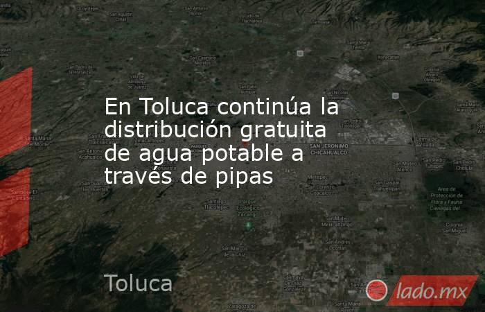 Durante todo el mes de abril seguirá la distribución gratuita de agua a través de pipas para abastecer las necesidades de las y los toluqueños y aminorar la falta del vital líquido en colonias, barrios y delegaciones, ello como parte del compromiso del presidente municipal, Ricardo Moreno Bastida, de fomentar el bienestar de la ciudadanía.