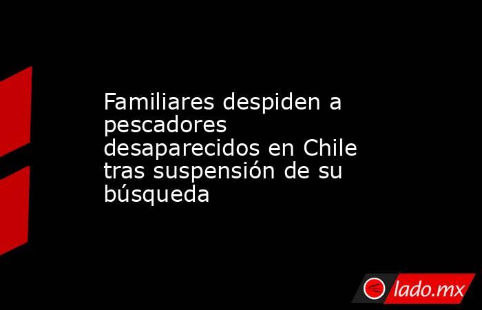 Santiago de Chile, 16 abr (EFE).- Familiares de los siete pescadores de la lancha 'Bruma' desaparecidos en la costa chilena de Coronel, unos 530 kilómetros al sur de la capital, despidieron este miércoles a sus parientes en un sentido homenaje a bordo del buque 'Janequeo' de la Armada, que se desplazó al lugar del incidente que presuntamente provocó su desaparición hace 15 días.