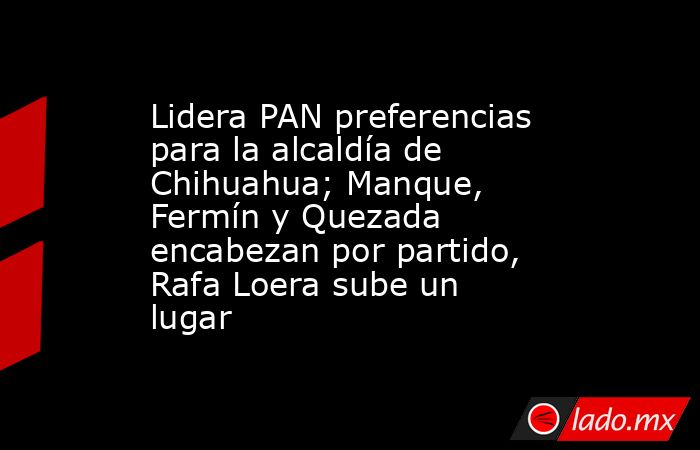 PAN: Manque Granados y César Jáuregui encabezan los sondeos en el PAN por la alcaldía de Chihuahua. Mientras que en tercer lugar se ubica Rafael Loera, el cual subió un lugar respecto a la última encuesta llevada a cabo en febrero, al alcanzar en este mes el 17.8 por ciento de las preferencias.