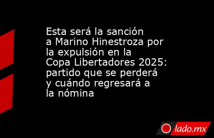 Según reportes del periodista David Gutiérrez, la sanción de Marino Hinestroza no será mayor, por lo que podrá regresar a la acción en la próxima jornada de la Libertadores, cuando Atlético Nacional reciba nuevamente a Internacional el 8 de mayo en el Atanasio Girardot.