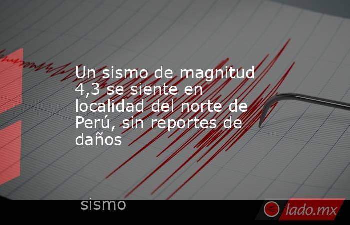 Lima, 23 ene (EFE).- Un sismo de magnitud 4,3 se sintió este jueves en la zona costera de la región de Áncash, en el norte de Perú, sin que hasta el momento se reporten daños personales o materiales, informaron fuentes oficiales.